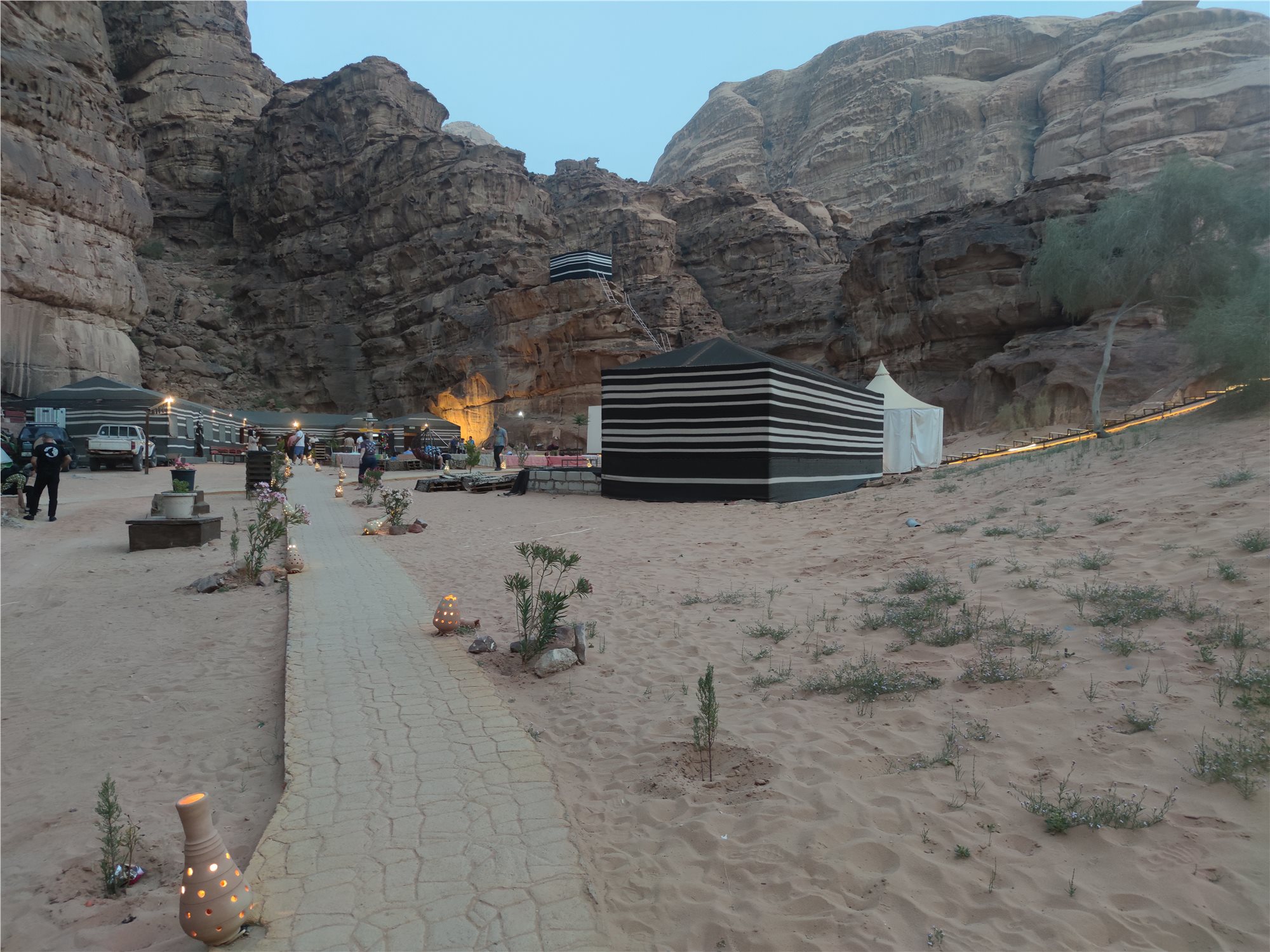 6. deň: po snídani se rozloučíme s Petrou a přejedeme do krásného údolí WADI RUM, které je též známé pod názvem "Měsíční údolí" a do povědomí západního světa se dostalo díky Lawrencovi z Arábie, jehož podobiznu uvidíte na jedné ze skal. Po poušti a ke skalnatým horám nás v jeepu provezou ti nejpovolanější, místní beduíni, a našim úkolem bude jen nechat se unášet přes písečné duny až k labyrintu pískovcových, čedičových a žulových útvarů, které se zvedají z nekonečných, tichem prostoupených písečných plání do výšky až 1700 m. n. m. Skály mají díky erozní činnosti fantaskní tvary, které jistě probudí vaši představivost. Odpoledne se ubytujeme v pohodlných pouštních stanech (klimatizace, vlastní soc. zařízení) a budeme si moci užívat neopakovatelnou atmosféru noclehu v poušti s výhledem na hvězdy. Součástí ubytování je i večeře s beduínskými specialitami.