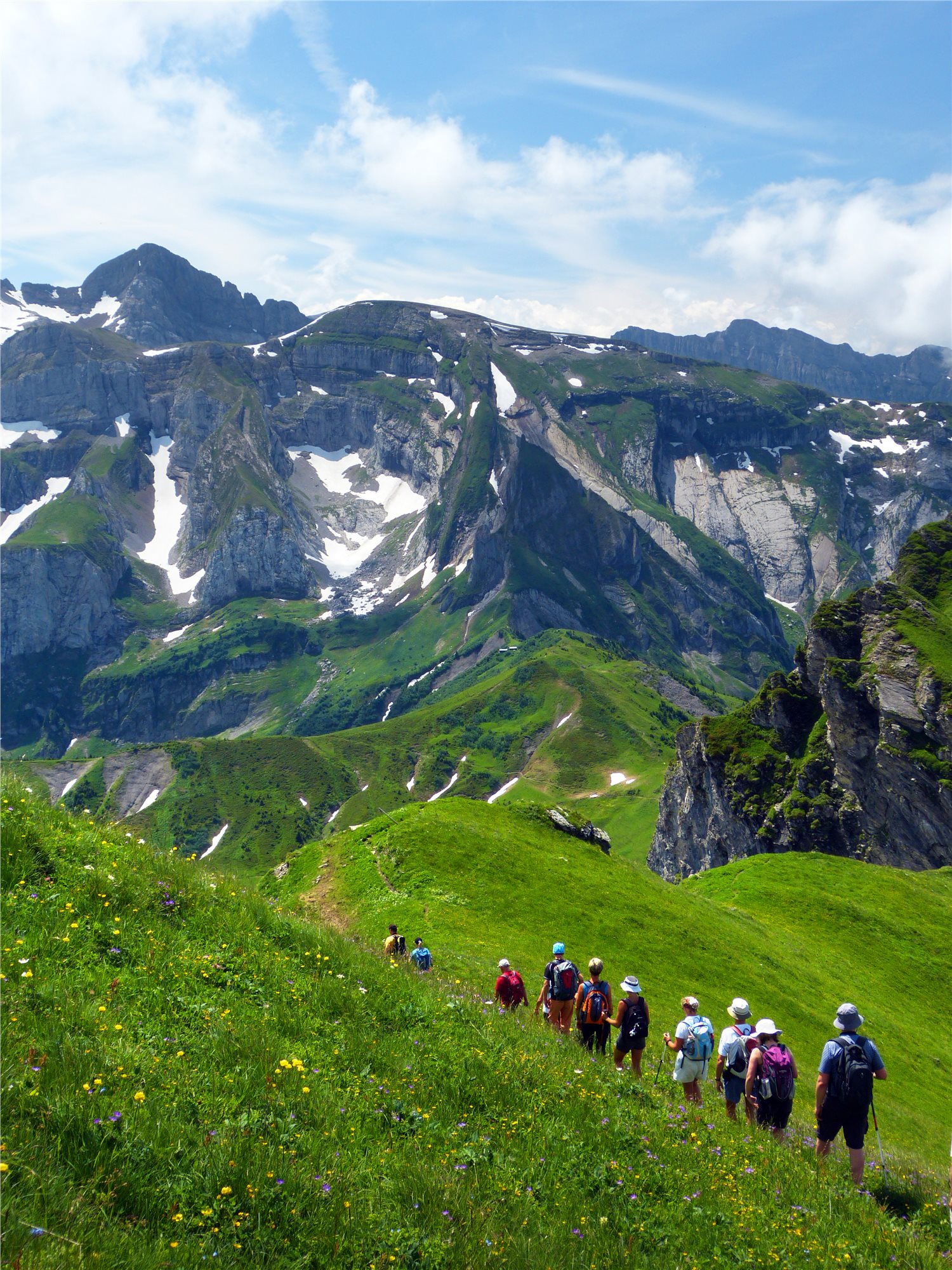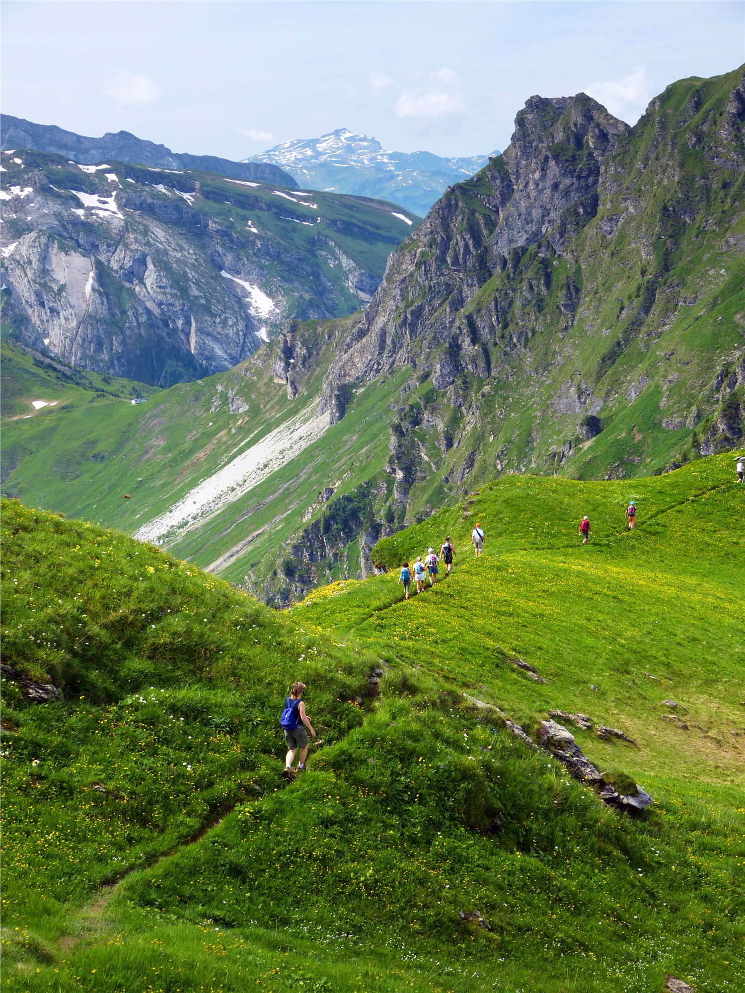 6. deň: snídaně, odjezd do CHATEL (1 200 m), výjezd lanovkami až k LE MORCLAN (1 970 m). Základní varianta (2 z 5; 7 hod., ↑200 m, ↓300 m): panoramatickou vyhlídkovou cestou s jedinečnými vyhlídkami i na Ženevské jezero přes CHALET DU MOUET (1840 m), zpět k lanovce přes PORTES D ONNAZ, sjezd lanovkou do SUPER CHATEL (1 660 m), odkud lze pokračovat přes CHALET NEUF (1 692 m) do MORGINS (1 430 m), procházka podél říčky Vieze de Morgins. Lehčí varianta (1,5 z 5; 5 hod., ↑200 m, ↓200 m): stejná trasa, jen ze Super Chatel sjezd lanovkou k busu, přejezd do Morgins. Všichni odjezd busem na hotel, večeře.