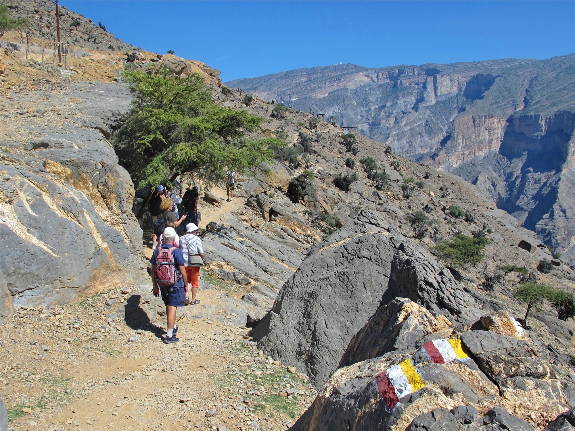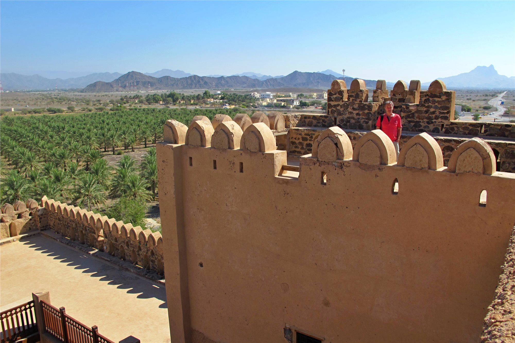 5. deň: po snídani do Jabrinu, návštěva hradu, jednoho z nejmalebnějších míst Ománu. Postaven v 17.století imámem Bil Arabem a stal se důležitým centrem vzdělání (astrologie, medicína, islámské právo). Zachovalé nástěnné malby, jemná řezba, arabská kaligrafie. Přejezd do Al Khitaym, odtud po tzv. balkonové cestě po úbočí Ománského velkého kaňonu. Nevšední zážitek uprostřed příkrých, vysokých skal. Návrat do hotelu, večeře.