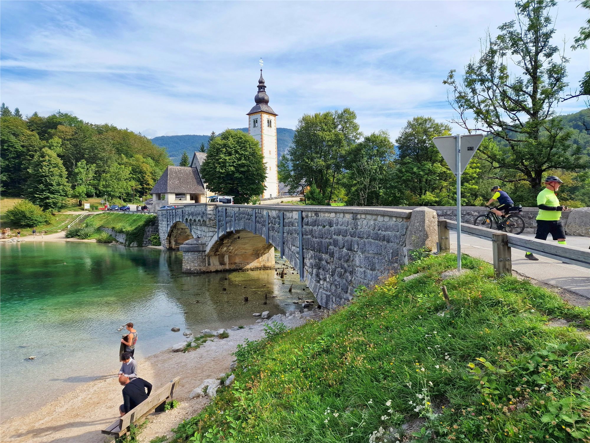 3. deň: snídaně, autobusem odjezd k nádherně položenému BOHINJSKÉMU JEZERU, krátký pěší výšlap k vodopádům SAVICA a zpět. Na kole sjedeme k jezeru. Cesta podél břehu nás zavede ke krásným kostelíkům v horském centru RIBČEV LAZ s možností občerstvení. Dále do vesničky STARA FUŽINA s muzeem pastevectví. Návrat do RIBČEV LAZ, relaxace u jezera a poté setkání s autobusem a odjezd do hotelu (12 km) nebo malebným údolím podél řeky SAVA BOHINJKA do Bledu (40 km), večeře.