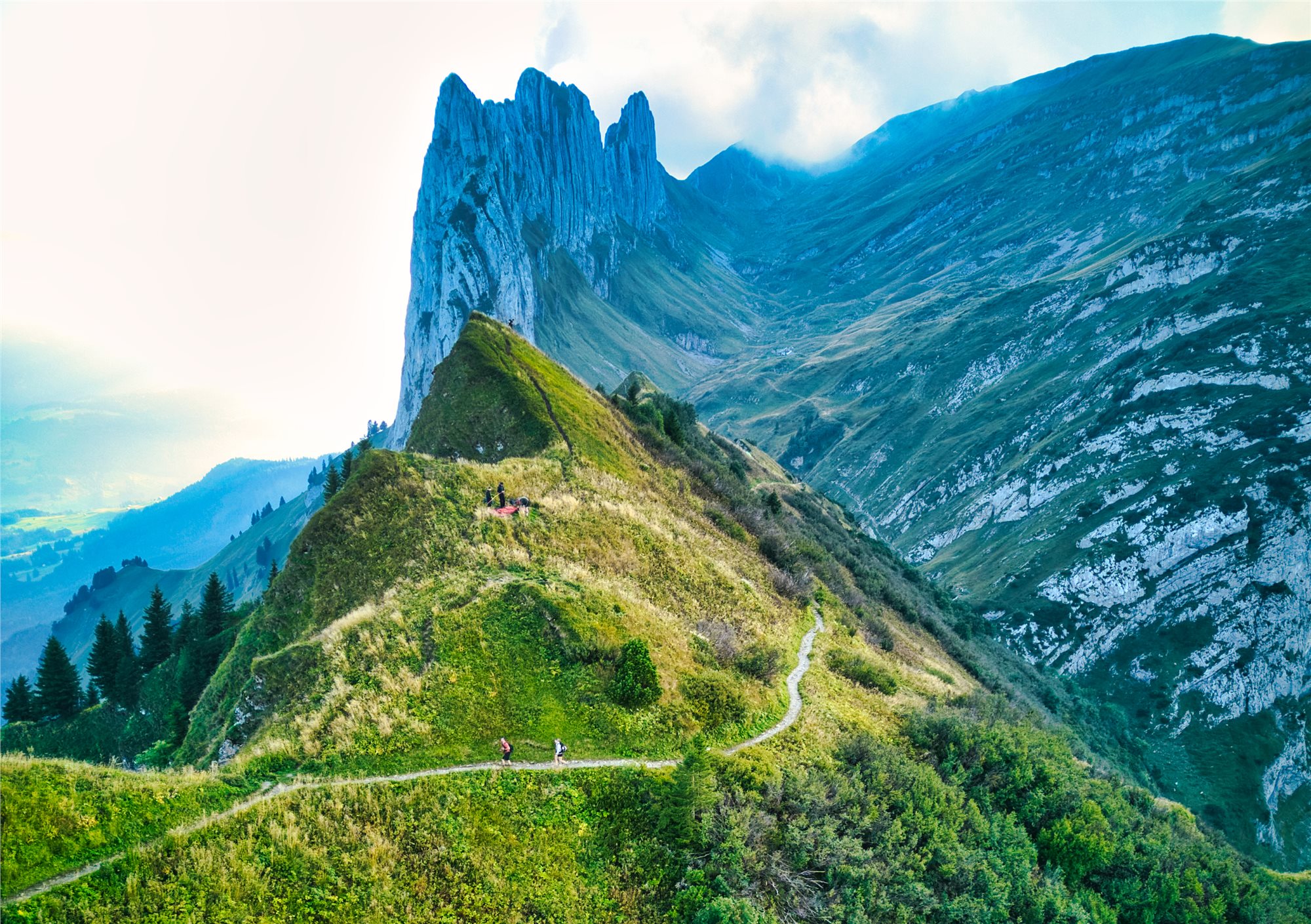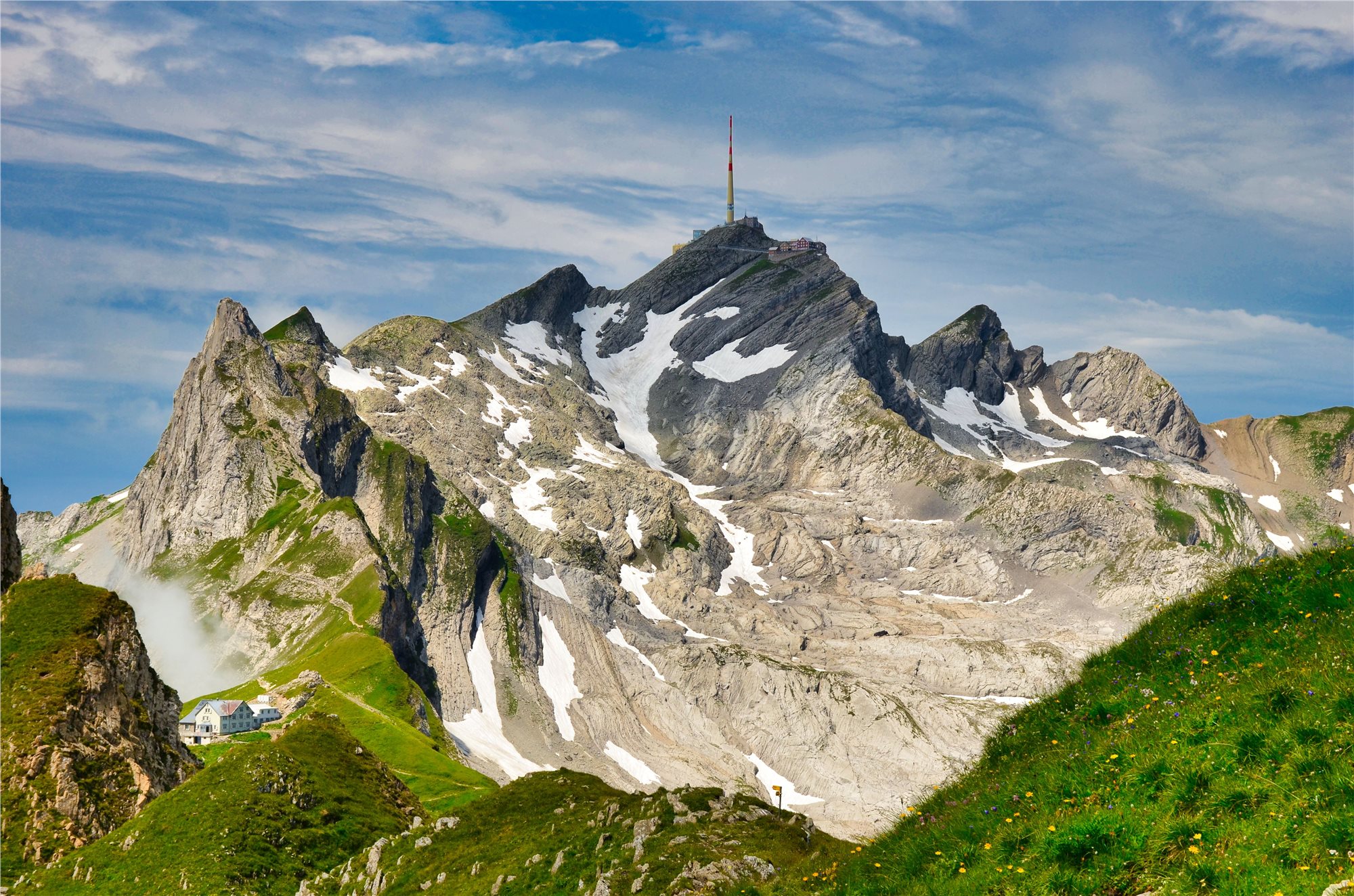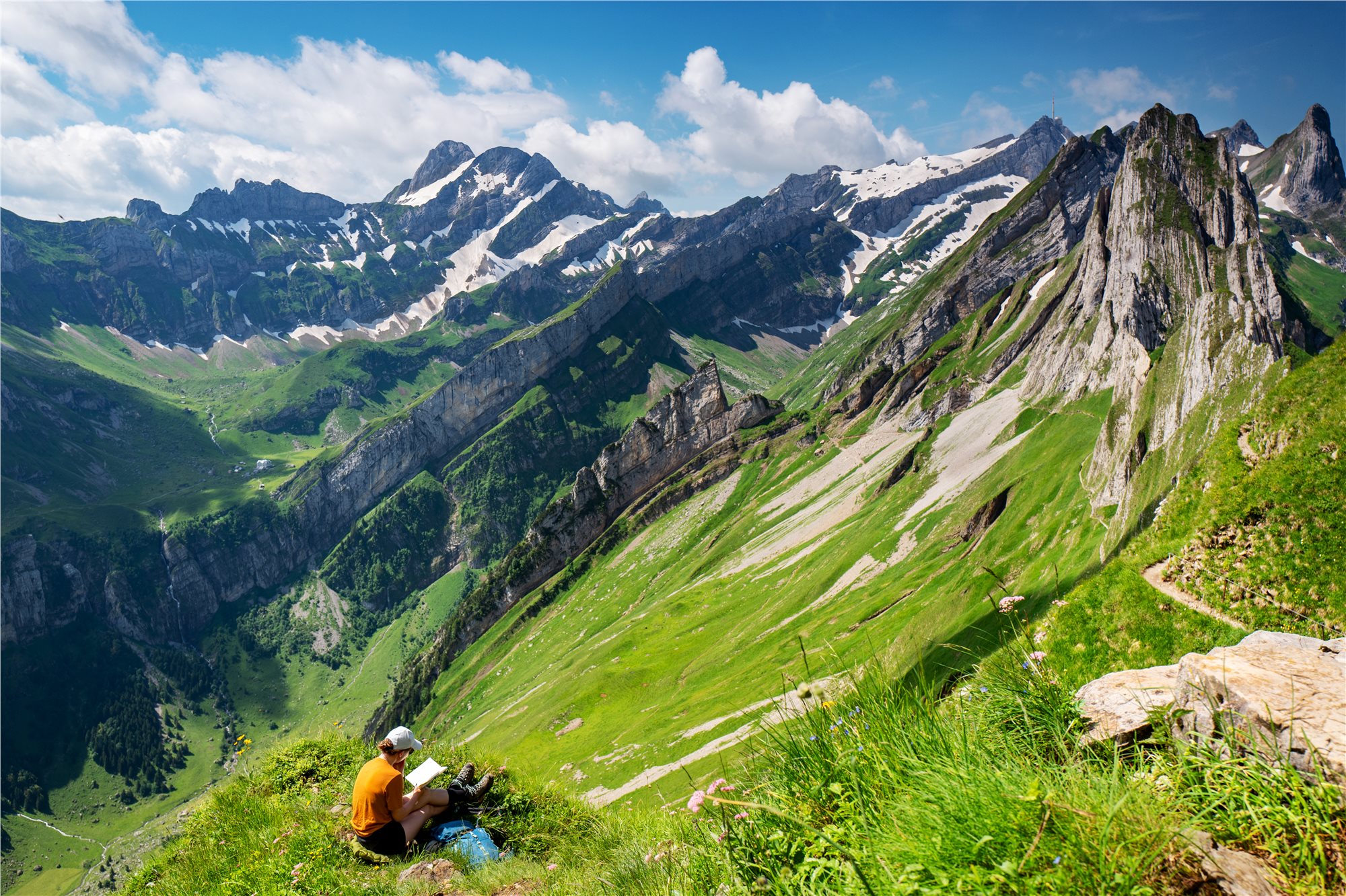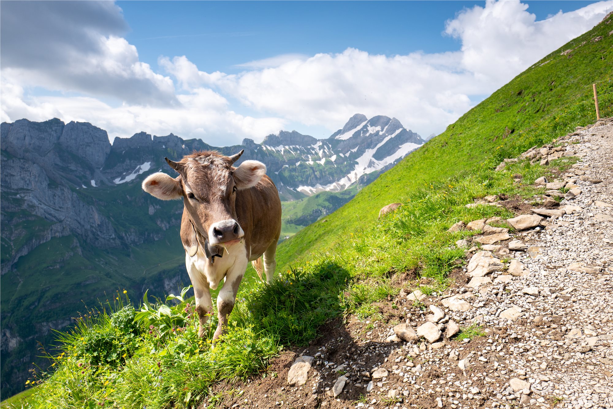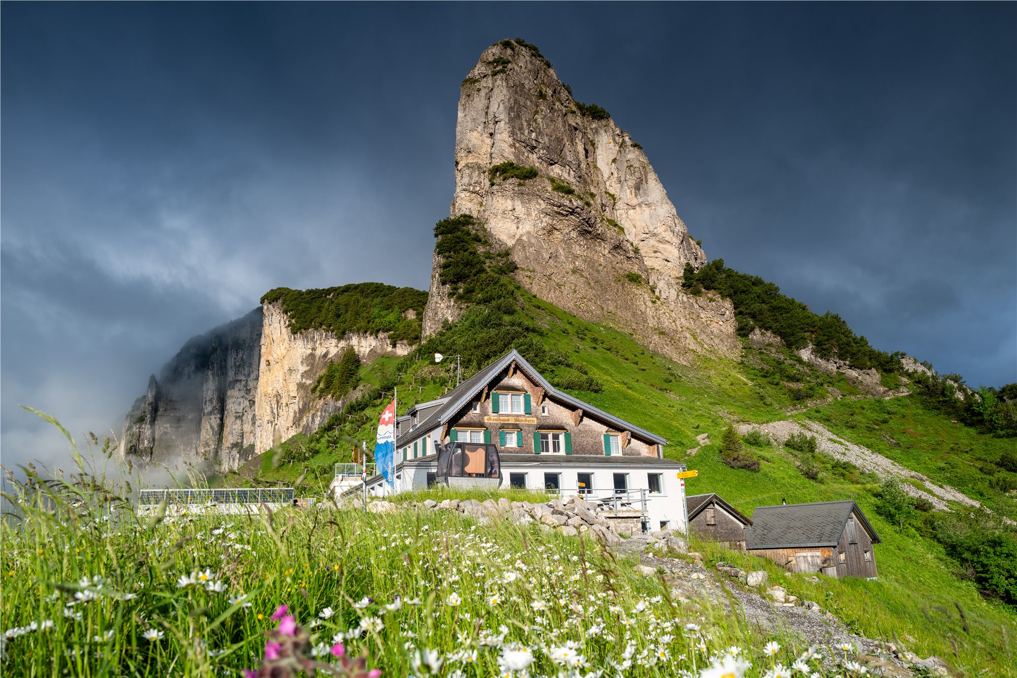 5. deň: snídaně, odjezd naším busem do WASSERAUEN, výjezd lanovkou na EBENALP (1 590 m), Základní varianta (2 z 5, 5 hod., ↑100 m, ↓350 m). Z horní stanice lanovky se vydáme k chatě Berggasthaus ÄSCHER, která patří mezi nejikoničtější místa ve Švýcarsku s neuvěřitelnou polohou ve skalní stěně, chata je doslova přilepená ke skalnímu útesu v oblasti Appenzell a najdete ji ve výšce 1454 m n. m. Výhledy na švýcarské Alpy, údolí Seealpsee a okolní vrcholy jsou dechberoucí. Je to místo, kde se člověk cítí jako v pohádce nebo na hraně světa. Dále určitě stojí za zmínku návštěva jeskynního kostela WILDKIRCHLI, procházka skalními tunely a krátký (ale působivý) trek. Je to zážitek sám o sobě – ideální pro milovníky přírody a velmi mírného adrenalinu. Po této nádheře sestoupáme k jezeru SEEALPSEE (1 170 m) a údolím kolem potoka SCHWENDENBACH zpět k našemu busu a odjezd na hotel, večeře.