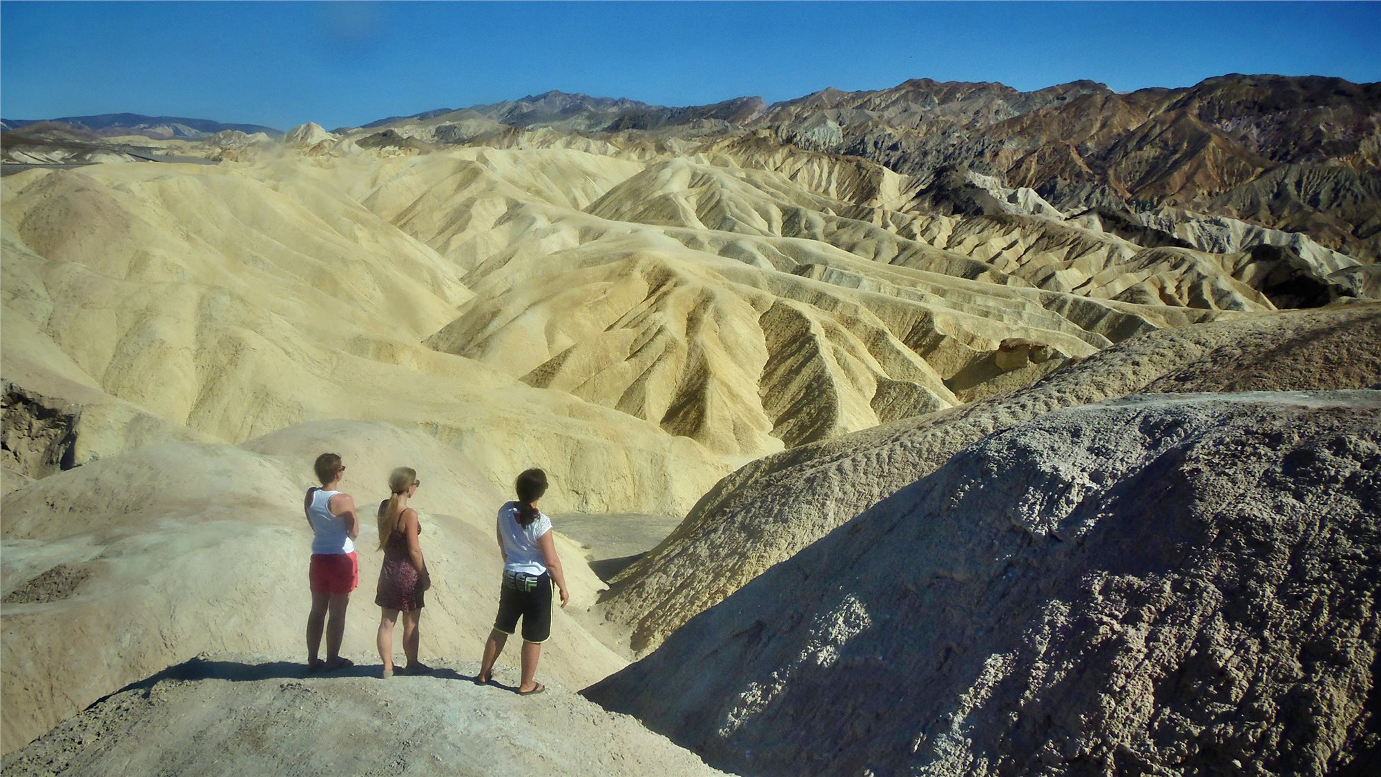 2. deň: z Las Vegas přejedeme na nejteplejší místo na západní polokouli, do ÚDOLÍ SMRTI, kde zamíříme na vyhlídku ZABRISKIE POINT, odkud se nám naskytnou nádherné výhledy na zlatavě zbarvené údolí zerodované do podoby vln a různých záhybů. Budeme pokračovat pěšky mezi těmito vlnkami a pozorovat jednotlivé geologické vrstvy a staré zbytky těžebních šachet. Naším cílem je vrcholek MANLY BEACON, ze kterého budeme mít tuto nádheru jako na dlani (5,5 km, ↑↓100 m, 2 hod.). Poté zamíříme na silnici zvanou ARTIST’S DRIVE, která nás provede měsíční krajinou starou více než 3 miliony let. Zastavíme u Malířovy palety ARTIST’S PALETTE, kde si užijeme pohled na skalnaté, rozeklané duny zbarvené do různých perleťových barev. Den zakončíme v krajině zvrásněných solných plání BADWATER, které leží 86 m pod hladinou moře a jsou tak nejníže položených místem v Severní Americe. Přejezd na ubytování do BEATTY.